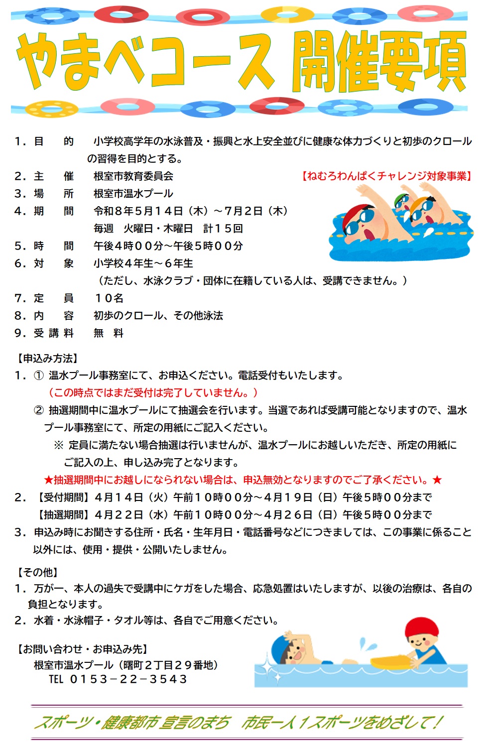 電話番号:0153-22-3543 ファックス:0153-23-3392温水プールへのお問い合わせはこちら