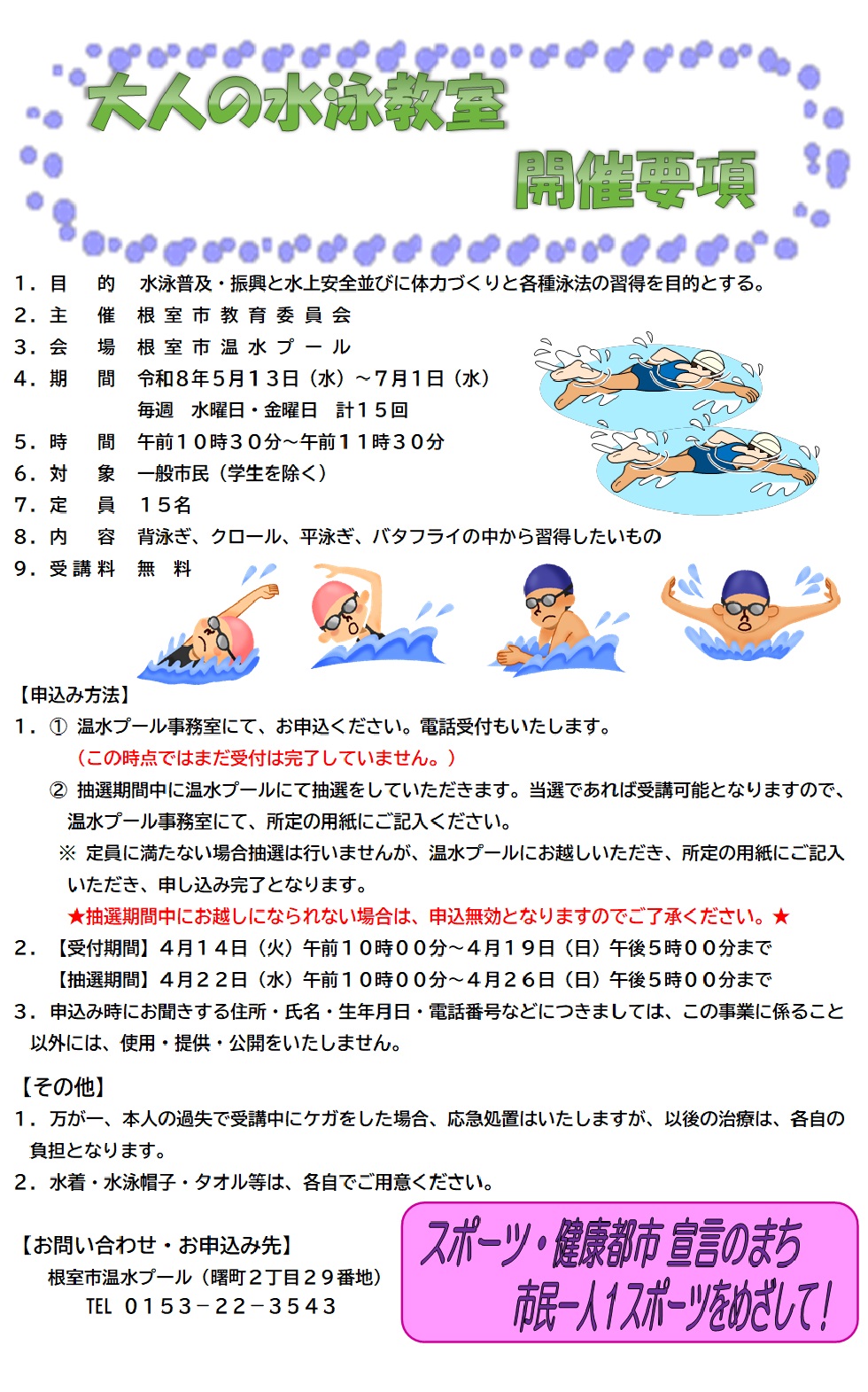 電話番号:0153-22-3543 ファックス:0153-23-3392温水プールへのお問い合わせはこちら
