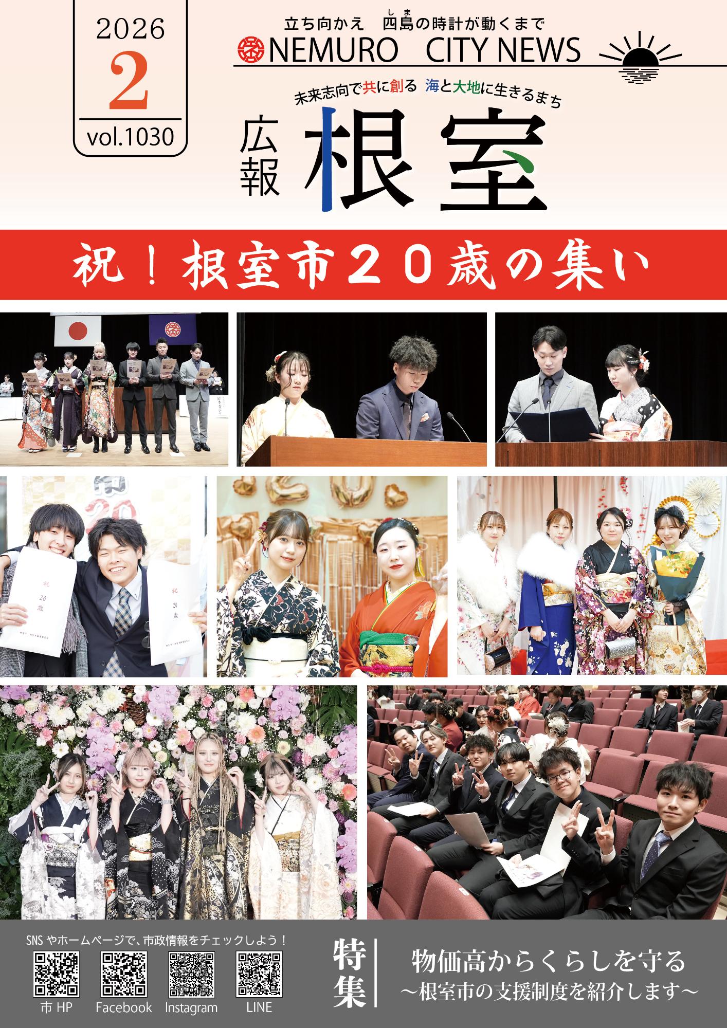 8-9p 根室のひとこま。(納沙布岬初日詣・金刀比羅神社裸参り、浜の母ちゃん直伝!おさかな漬物教室合同試食会、市内保育所合同交流会、子ども書き初め教室、根室市消防出初式、令和8年20歳のつどい)