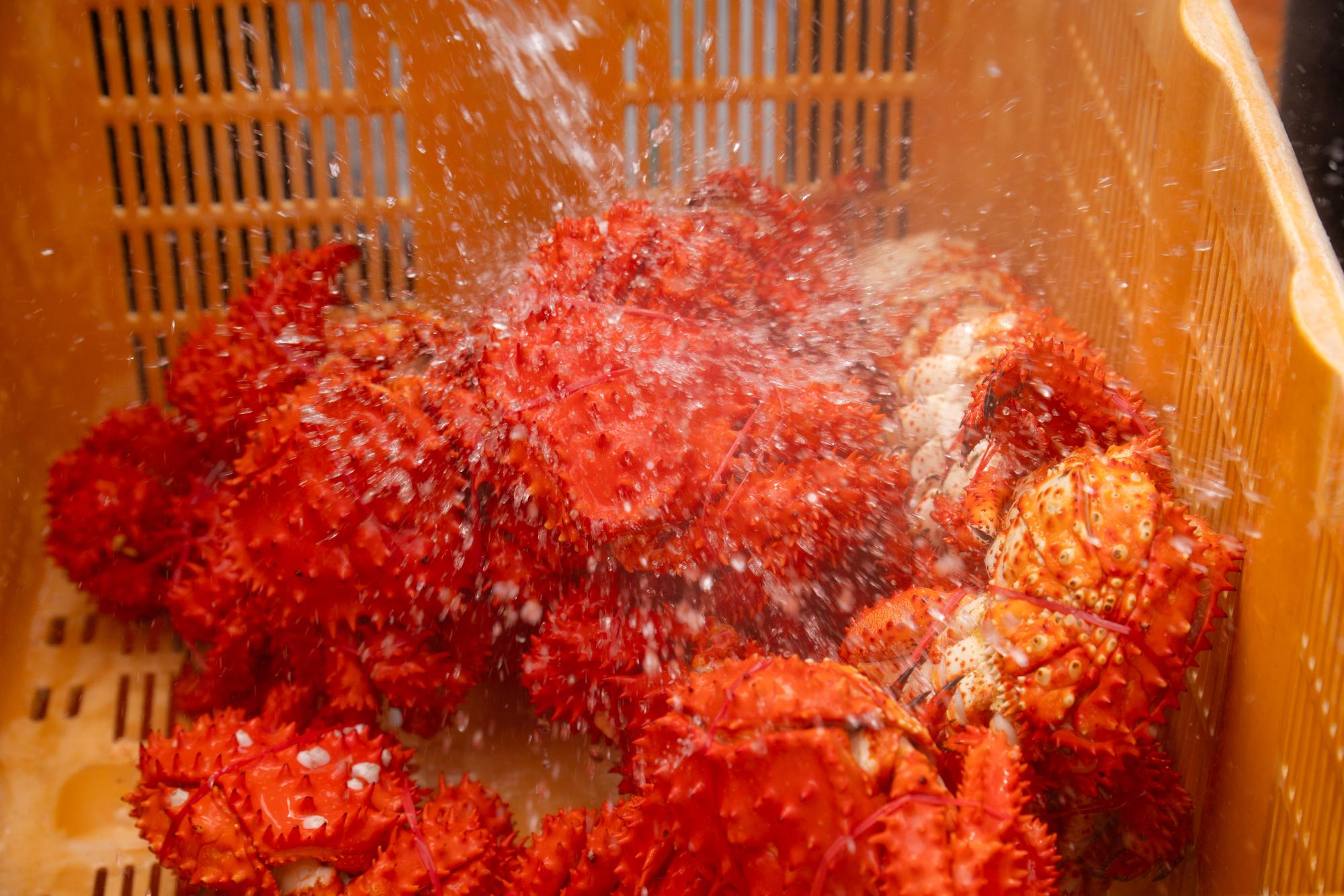 4年ぶりの開催となったかに祭りは馴染みの催しも復活。目玉の花咲がにの特売会やかにを使った直販メニューコーナーには、買い求める観光客などで列ができ、「かにゆであげ実演」では、名前の由来ともいわれる茹でると花が咲いたように甲羅が鮮やかな赤色に染まる様子を見ようと多くの方が押し寄せていました。