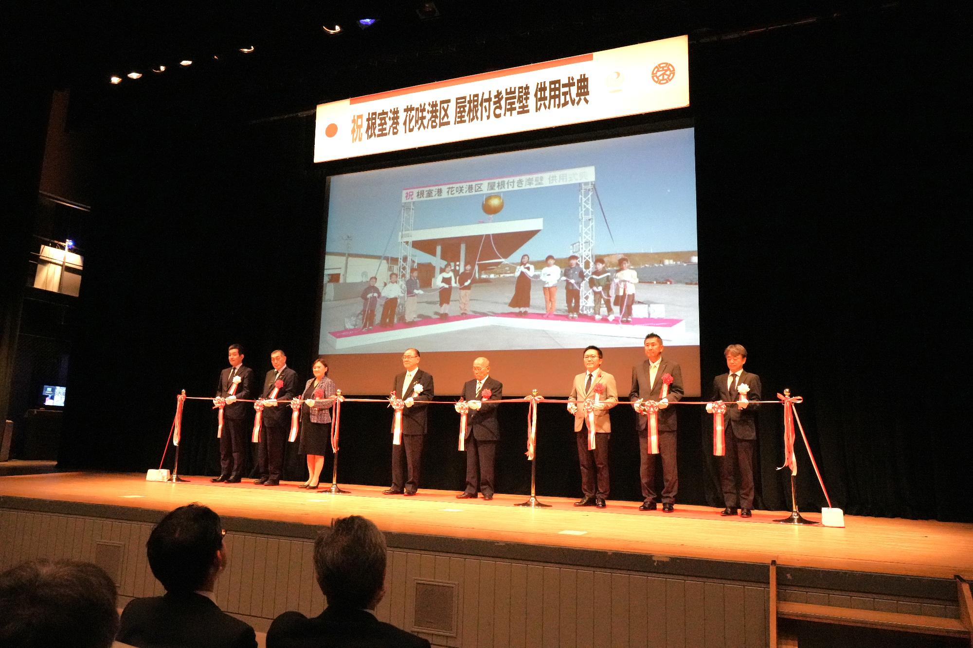 国が整備を進めていた重要港湾根室港花咲港区の屋根付き岸壁が完成し、供用式典が行われました。