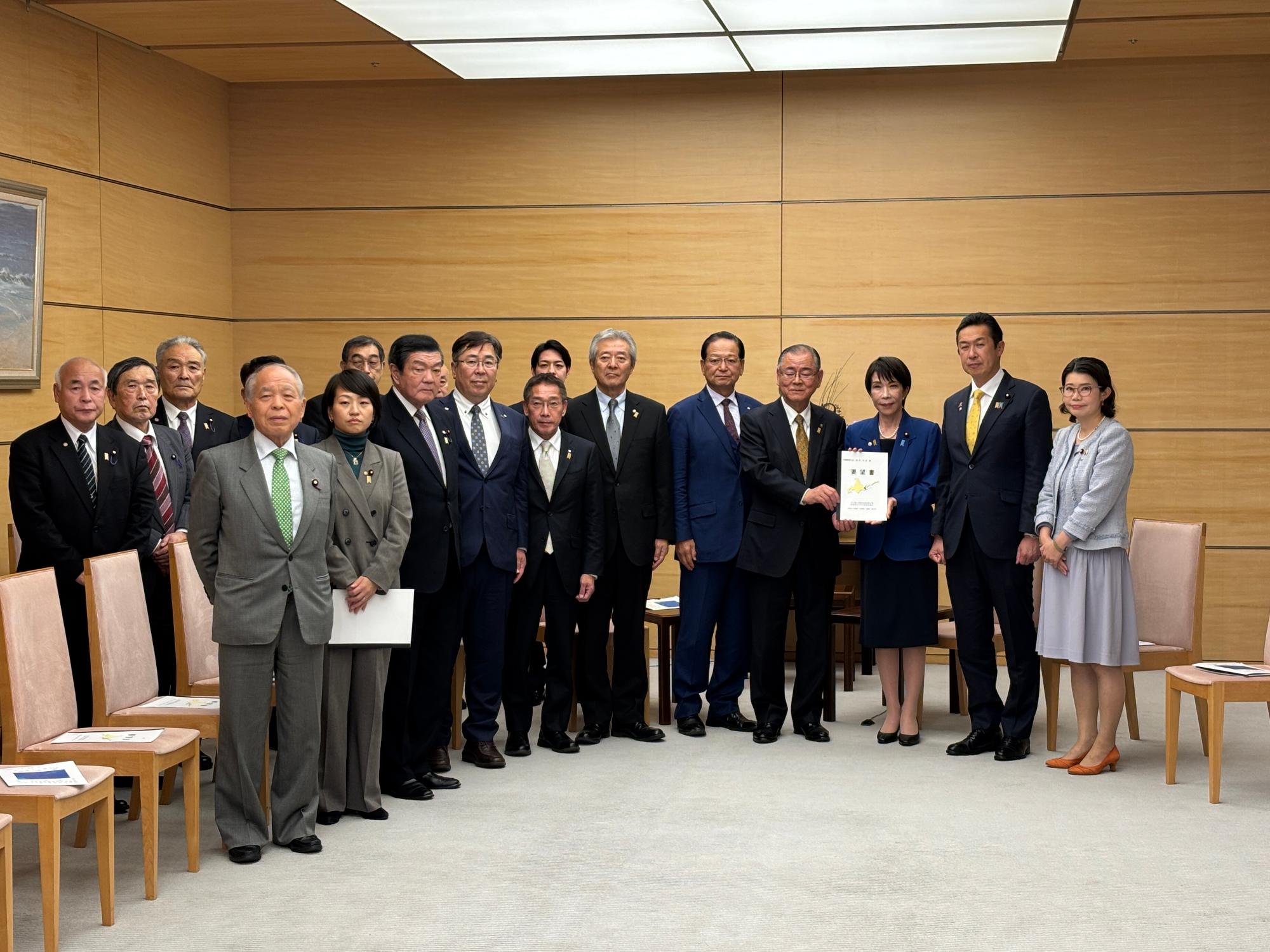 加えて、根室管内1市4町の首長と議長などが総理官邸を訪問し、高市総理をはじめ関係閣僚に対し返還要求運動の推進などに関する要望書を提出したほか、外務省において茂木外務大臣に対し要請活動を行いました。