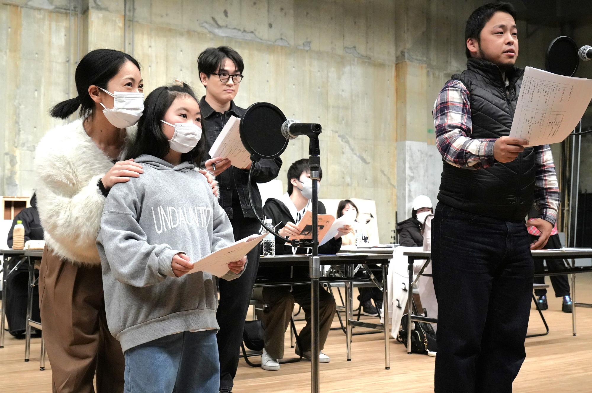 「みらいのアーティスト応援事業」の一環として、日野まりさんをはじめとする声優陣やプロデューサーを招き、ワークショップとトークショーを開催しました。ワークショップでは、参加者がゲスト指導のもとアニメのアフレコに挑戦。限られたマイクを入れ替わりながら収録する「マイクワーク」など、現場で使われる実践的な技法を学びました。トークショーでは、普段は聞けない制作秘話や裏話が語られ、来場者たちは興味深い話に引き込まれ、聞き入っていました。