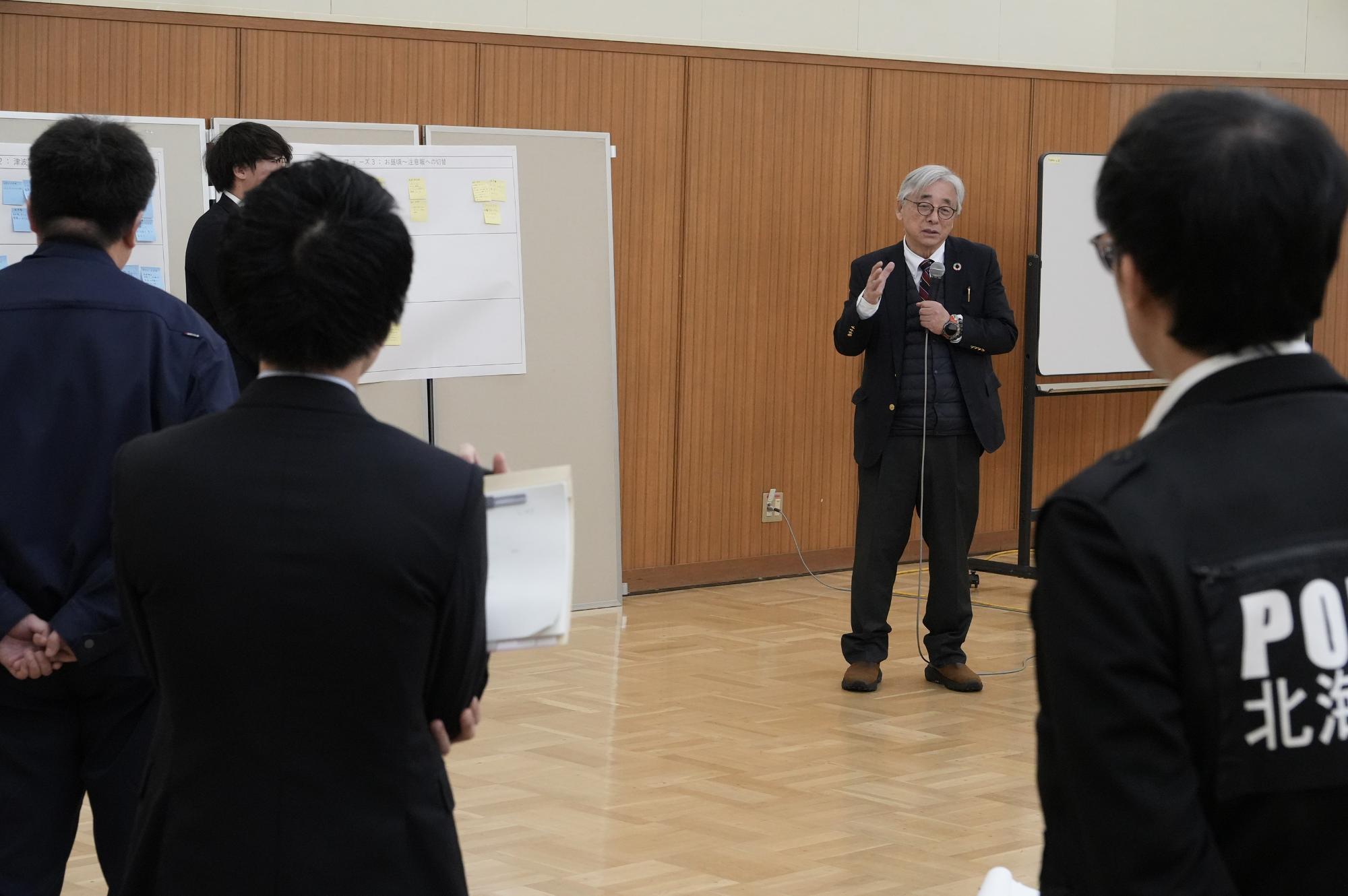 東京大学大学院情報学環 客員教授・松尾一郎氏を講師にお招きし、「カムチャツカ津波ワークショップ」を開催しました。根室市のほか、振興局、警察、消防、海上保安部、花咲港町会から 計20名が参加。先般のカムチャツカ地震に伴う津波への対応を振り返り、今後の連携・行動について確認しました。次に起こり得る災害に備えるため、参加者は真剣な眼差しで議論・演習に取り組み、課題と改善点を共有しました。