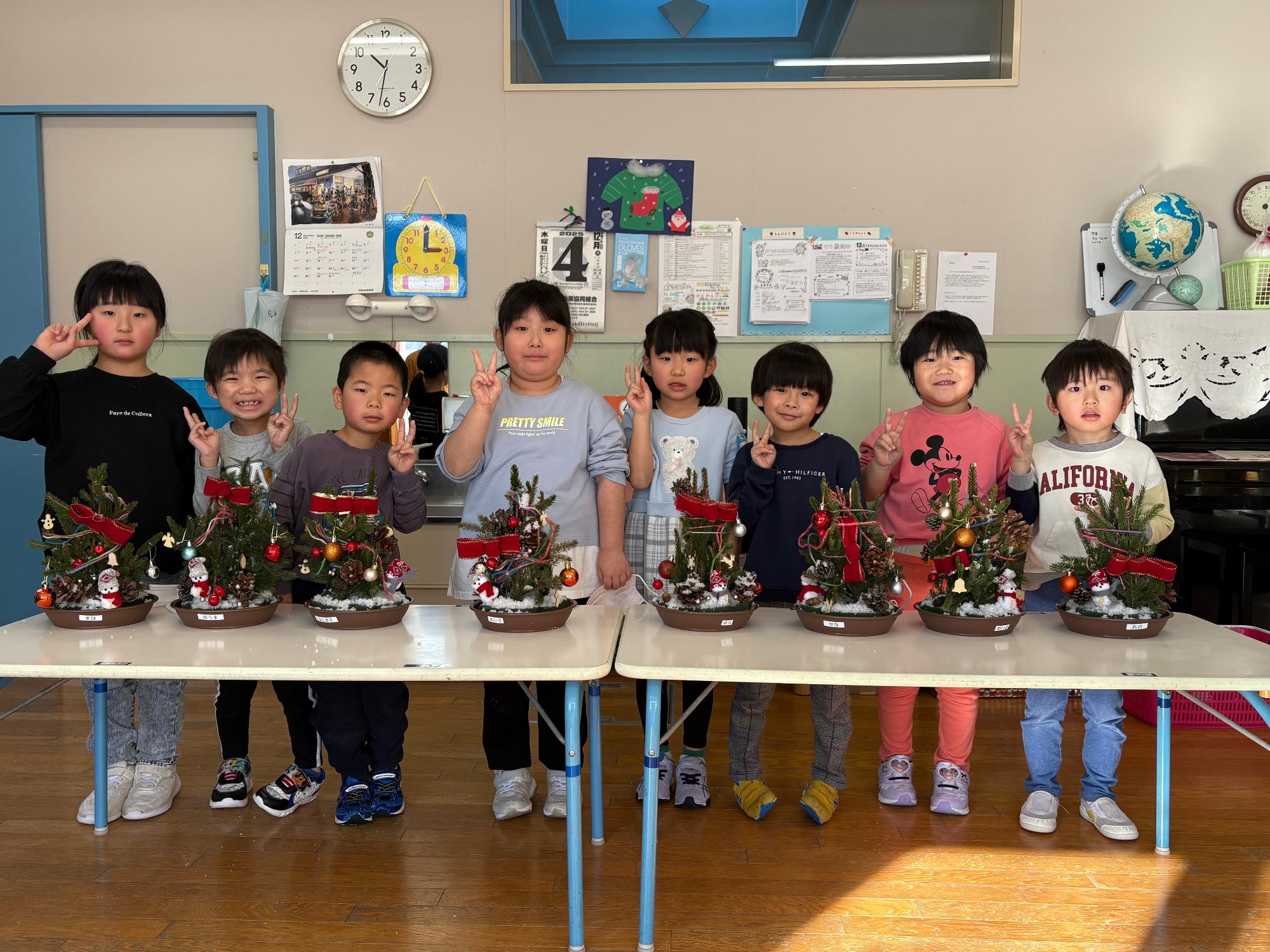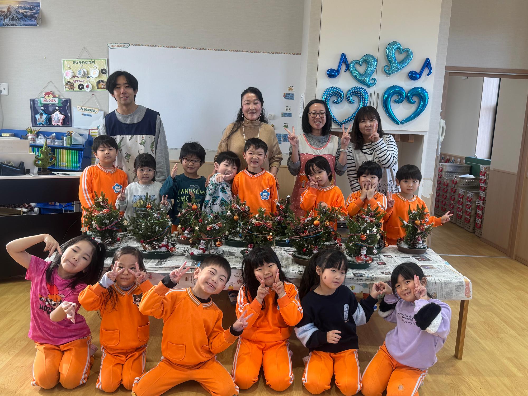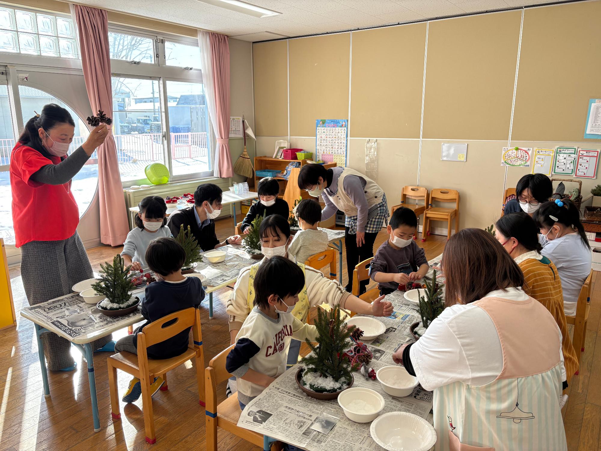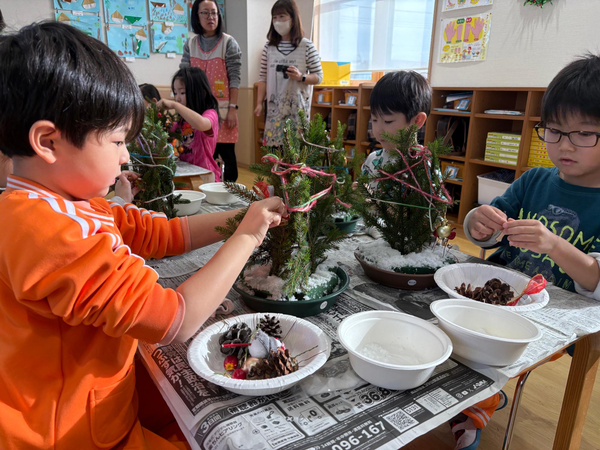 園児たちは、「この木はなんの木かな?」「アカエゾマツはどんな香りがするかな?」と、興味津々。世界にひとつだけの素敵なツリーを完成させました。