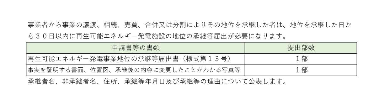 様式第13号 再生可能エネルギー発電事業地位の承継等届出書 (Wordファイル: 18.9KB)