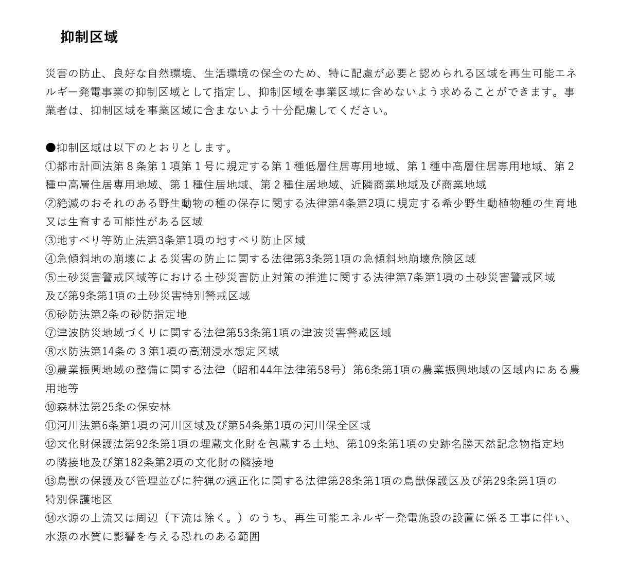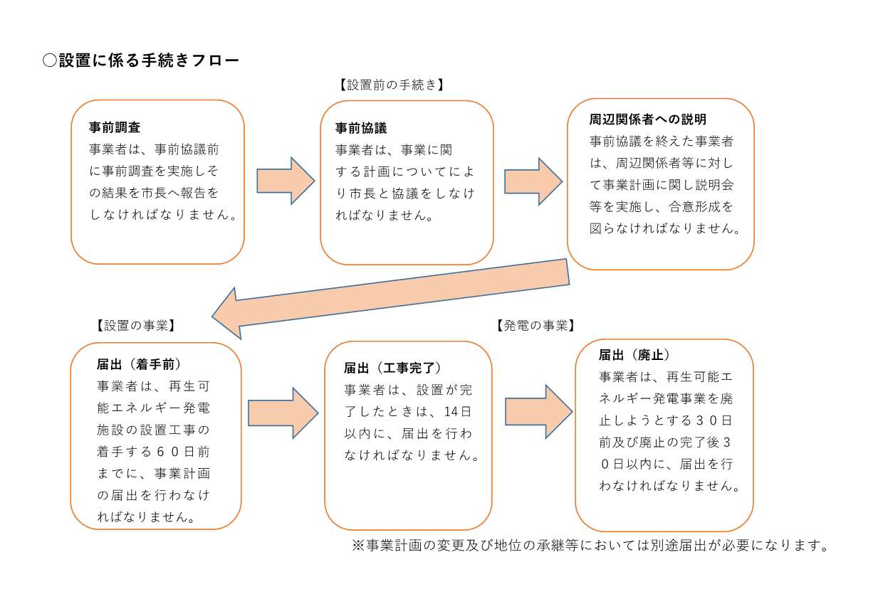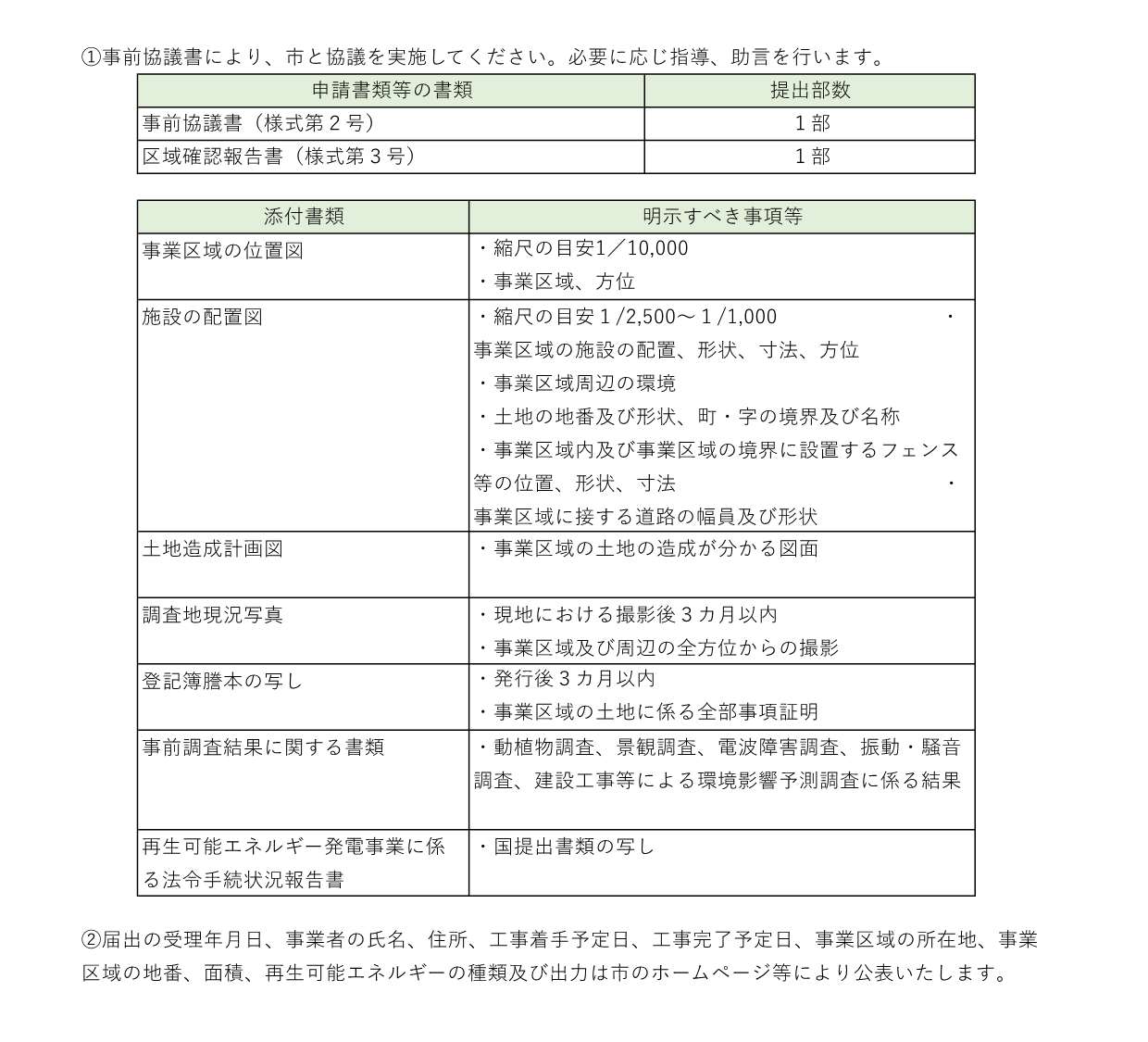 ※特に、本条例には発電事業を禁止又は抑制する地域を定めていますので、発電事業用の土地取得前及び電力会社との協議前の検討段階において、本市に相談するようお願いします。