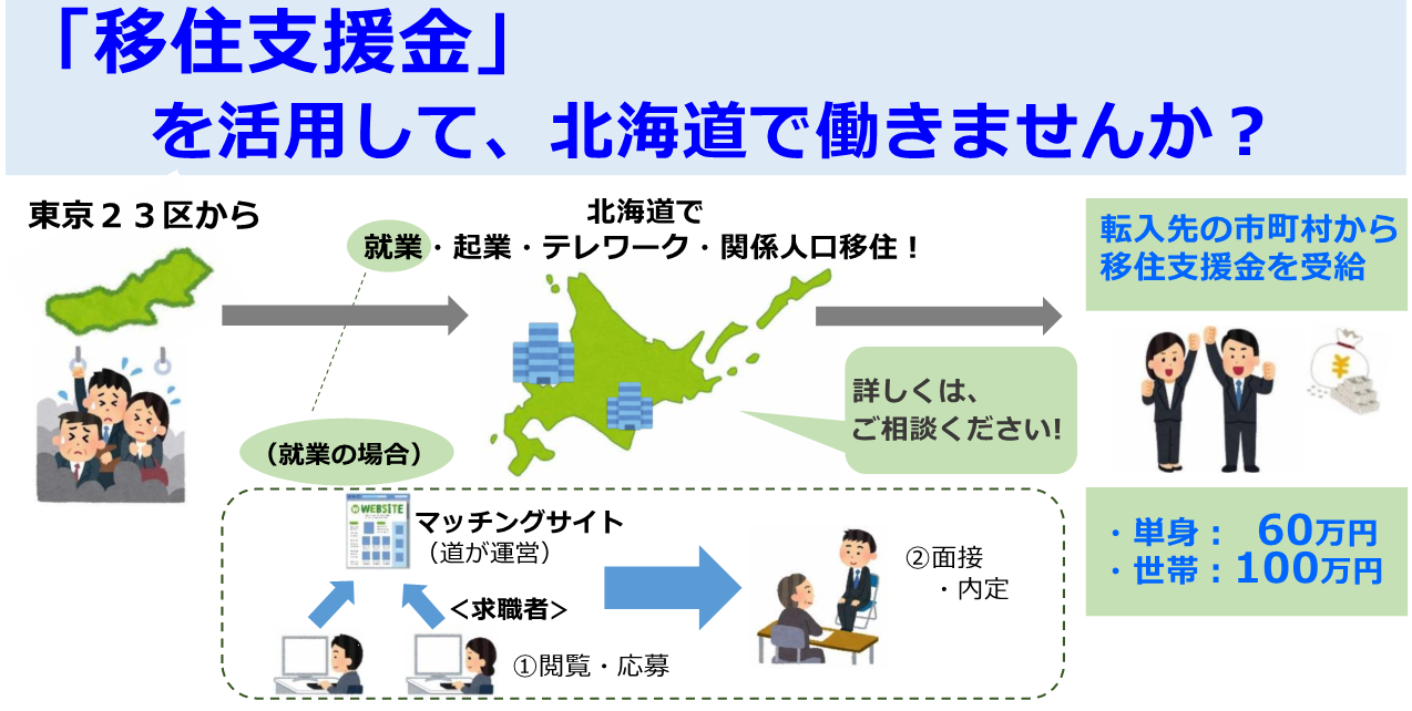 「北海道公式移住支援金対象求人就業マッチングサイト」掲載の移住支援金対象法人に新規就業すること