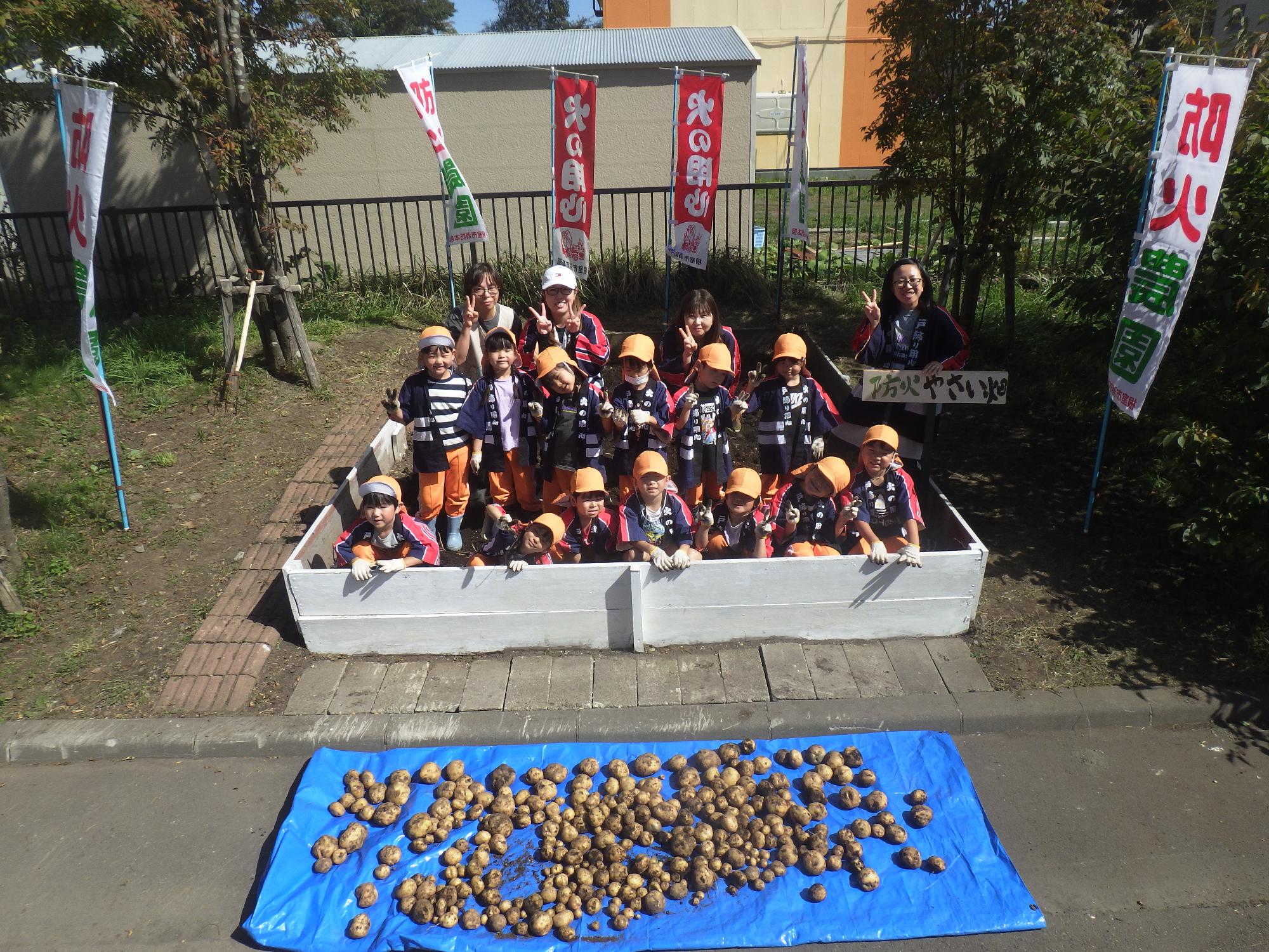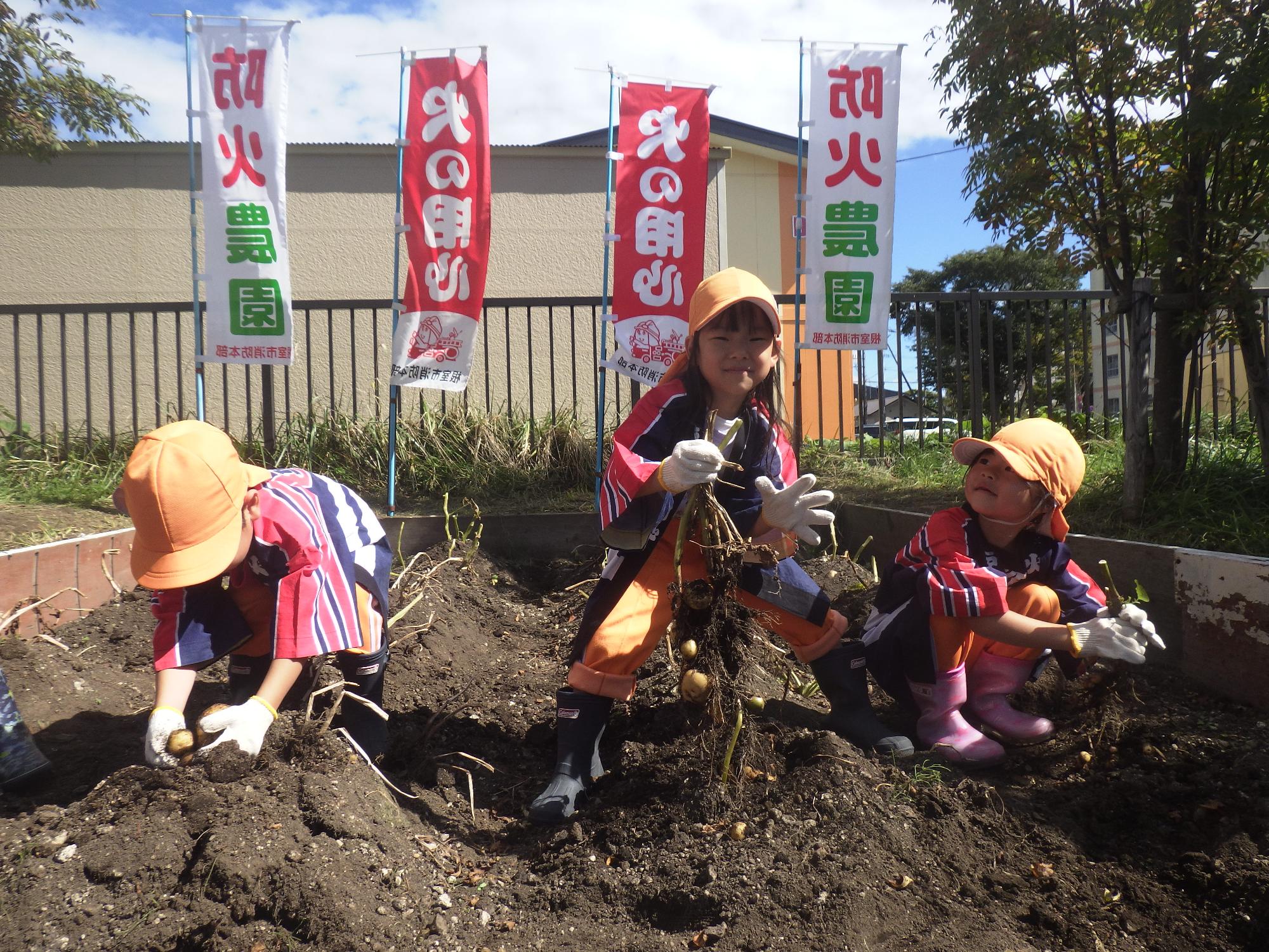 防火の願いを込めたじゃがいもは大きく育ち、実りの秋を迎え、園児たちは楽しそうに収穫してくれました。
