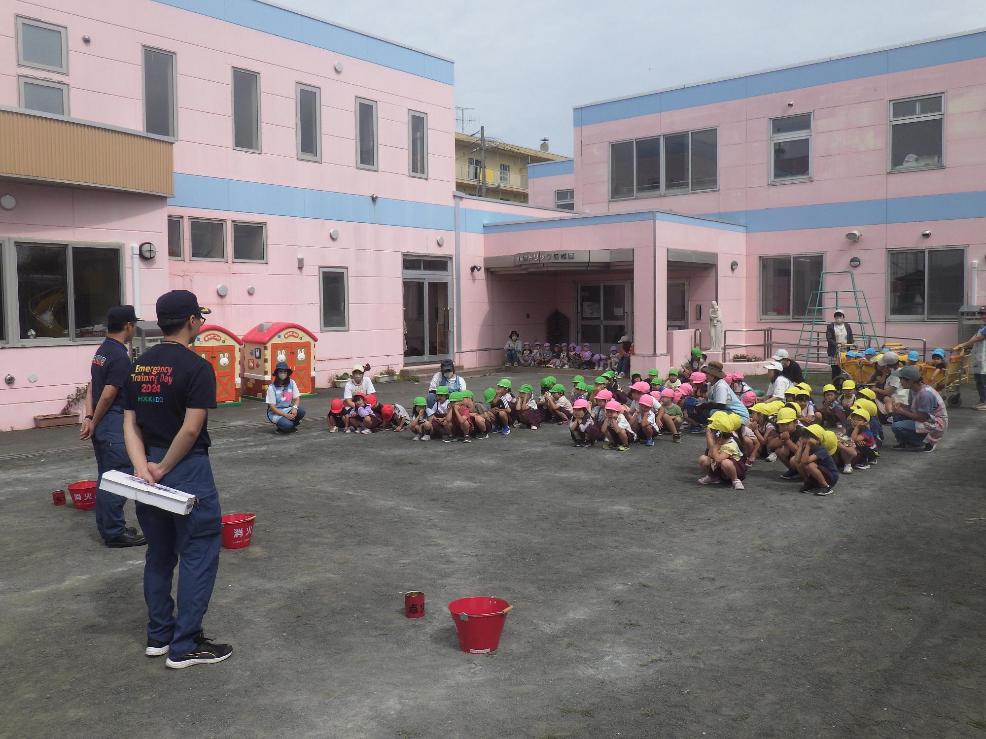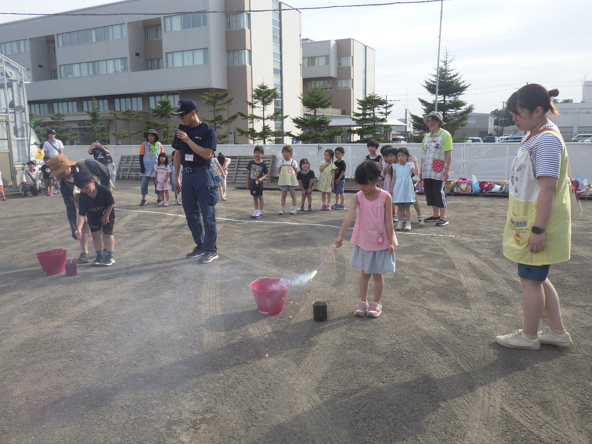 そこで、子供たちにおもちゃ花火の正しい使い方を学んでもらい、火災及び事故を防止するため、市内の幼稚園を対象に「おもちゃ花火教室」を実施しました。